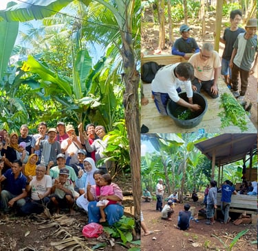 Pelatihan yang berlangsung di tengah area kebun petani ini memberikan suasana alami dan dekat dengan aktivitas pertanian sehari-hari. Materi pelatihan disampaikan langsung oleh fasilitator Kawan Tani Indonesia dengan metode praktik langsung dan diskusi terbuka, sehingga peserta bisa lebih memahami proses pembuatan Biosaka secara aplikatif.